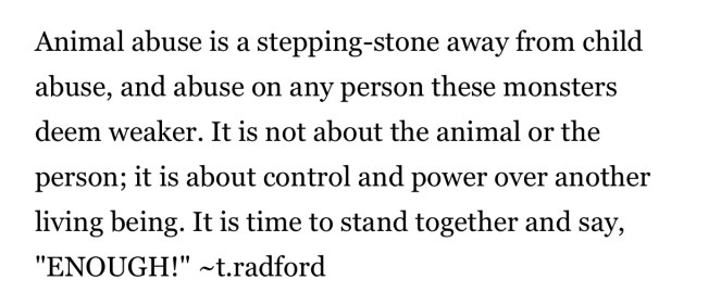 If you see something, say something. Call your local animal shelter, call the police, it’s always confidential and anonymous. Please be part of the solution not the problem!