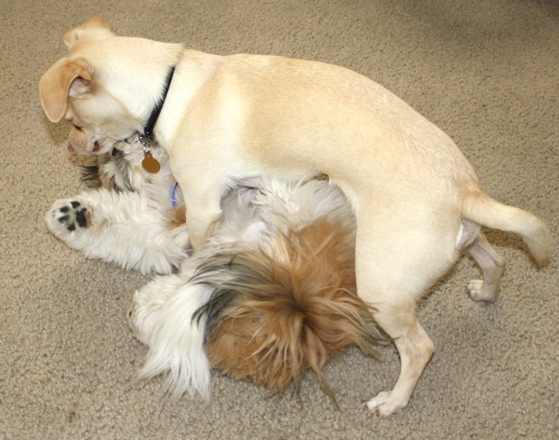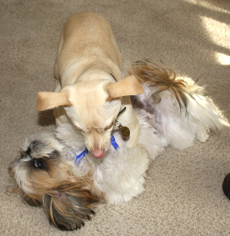 They left this morning, and now my Dexter baby is crushed. He keeps going to the front window and door and cries for Reilly. It’s so pathetic. 😛 My poor baby. He doesn’t even want to go outside with his ‘sister’ and ‘brother’ doggies. Oh well, he’ll get over it eventually. 😉