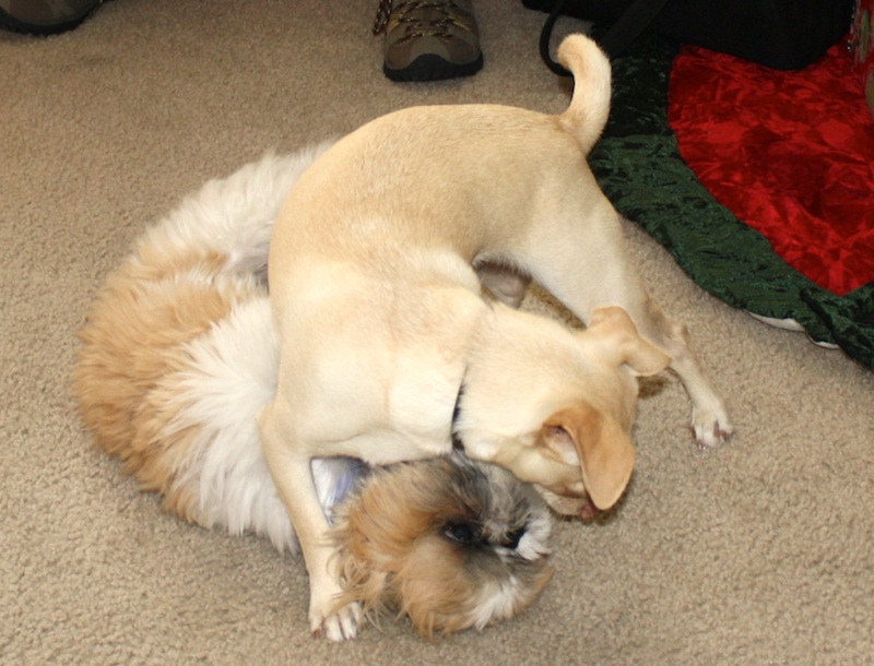 My dad and sm Cheryl came down yesterday as a stop over before heading to my sister Kim’s lake resort, 20 Oaks Cottages . They brought their lil puppy, Reilly, and he and Dexter had a blast. [they always do]