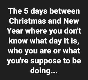 Bahahaha you know this is true! There are no more presents to wrap because by now they’ve all been unwrapped. People are deciding if they should take down Christmas immediately or if they should wait and take down on New Year’s. The malls are still pretty crowded because people are doing returns and/or finding what they think are deals after the holiday. People in the work force are praying that their company will also give them the day before New Year’s off. Who doesn’t want a four day weekend?